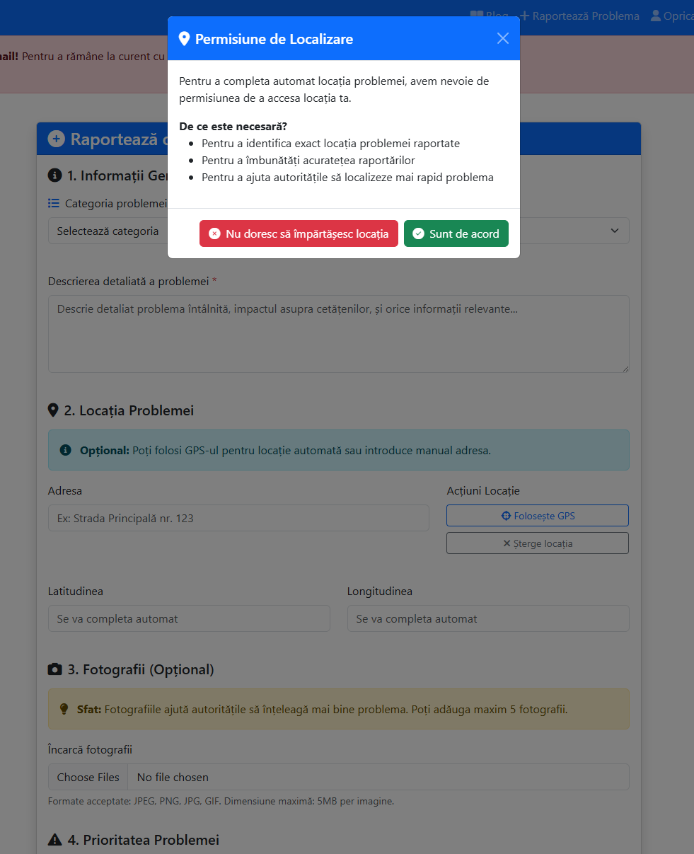 Dacă accepți, locația problemei va fi completată automat.