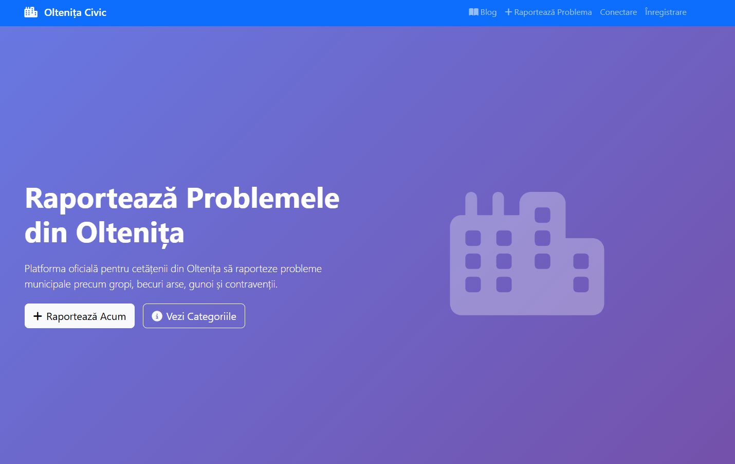 Platforma Oltenița Civic a fost creată pentru a simplifica procesul de raportare și pentru a ajuta cetățenii să contribuie la îmbunătățirea orașului. Urmând acest tutorial, vei putea să: